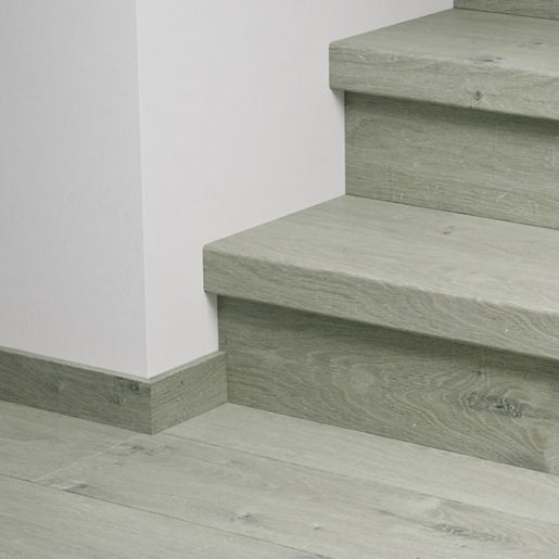Laminowane nakładki na schody - Impressive Quick-Step QSSTRBIM03558 Dąb spokojny szary - 1330 mm - 113 mm - 59 mm to idealna propozycja dla osób ceniących wysoką jakość, spójność aranżacji oraz dopracowane detale w każdym elemencie wykończenia wnętrz.