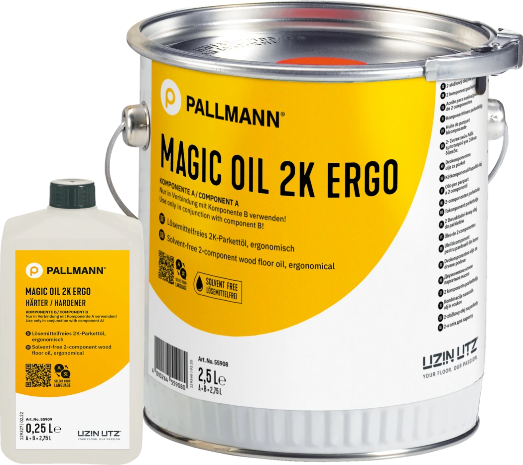 Wolna od rozpuszczalników, kombinacja naturalnych olejów i wosków sieciująca i schnąca oksydacyjnie w wyniku dodania utwardzacza. Ergonomiczna postawa przy zastosowaniu aplikatora MAGIC OIL APPLICATOR Zastosowanie Nadaje się do: szlifowanych i szpachlowanych parkietów i podłóg drewnianych bruku parkietowego RE podłóg drewnianych na wodnym ogrzewaniu podłogowym Właściwości Bardzo dobra odpormność na obciążenia mechaniczne i chemiczne Podkreśla kolor i strukturę drewna Ergonomiczna postawa przy zastosowaniu aplikatora MAGIC OIL APPLICATOR W porównaniu z aplikacją metodą konwencjonalną oszczędza się jeden krok roboczy Właściwości antypoślizgowe R10/ DIN 51130 DIN 53160 (odporny na ślinę i pot) DIN EN 71-3 (Bezpieczeństwo zabawek, część 3: migracja określonych pierwiastków)