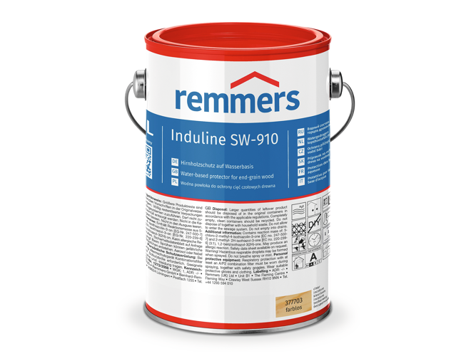 REMMERS Induline SW-910 wariant bezbarwny - 20 l - Wodna powłoka do ochrony cięć czołowych drewna zapewnia profesjonalne wsparcie przy każdym etapie prac, gwarantując długotrwały efekt i bezpieczeństwo użytkowania.