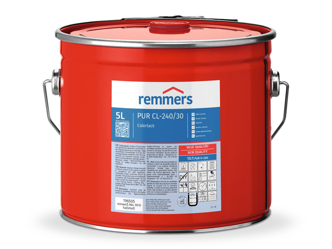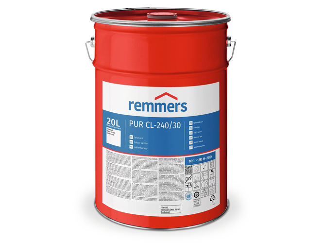 REMMERS PUR CL-240-Colorlack 30 półmat biały (RAL 9016) - 20 l - Trudnopalny światłotrwały lakier barwny 2K o dużej sile krycia to rozwiązanie, które spełni oczekiwania nawet najbardziej wymagających wykonawców.