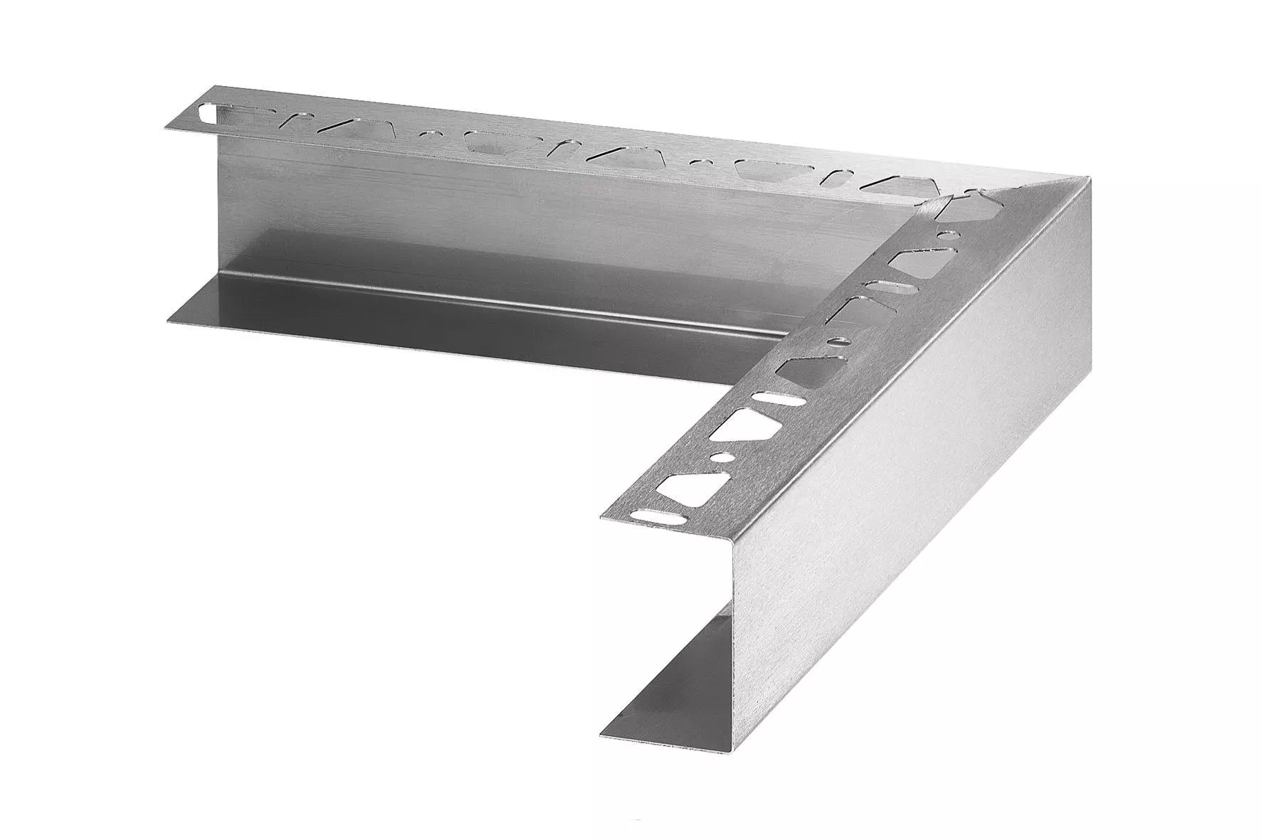 Idealne uzupełnienie profilu KERDI-BOARD-ZC: pasujące narożniki ze szczotkowanej stali nierdzewnej V2A posiadają pojedynczą perforację i są dostępne w dwóch różnych wysokościach: 38 mm i 50 mm.