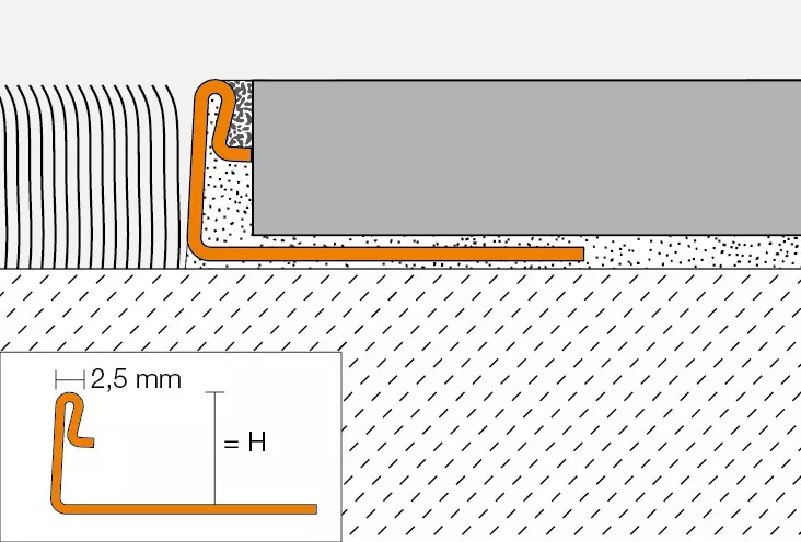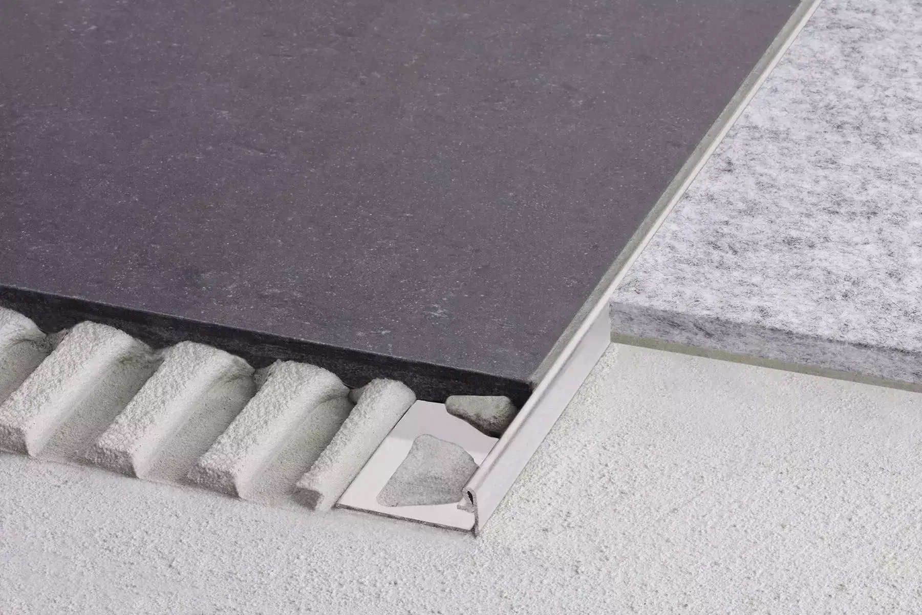 Schlüter-SCHIENE-ES to wysokiej jakości profil zakończeniowy ze stali nierdzewnej do płytek i kamienia naturalnego, który zapewnia staranny wygląd spoiny i łatwe układanie. Posiada opatentowaną technologię ogranicznika spoiny, która oddziela klej od zaprawy spoinowej, co sprawia, że jest jedynym profilem ze stali nierdzewnej z tym rozwiązaniem.