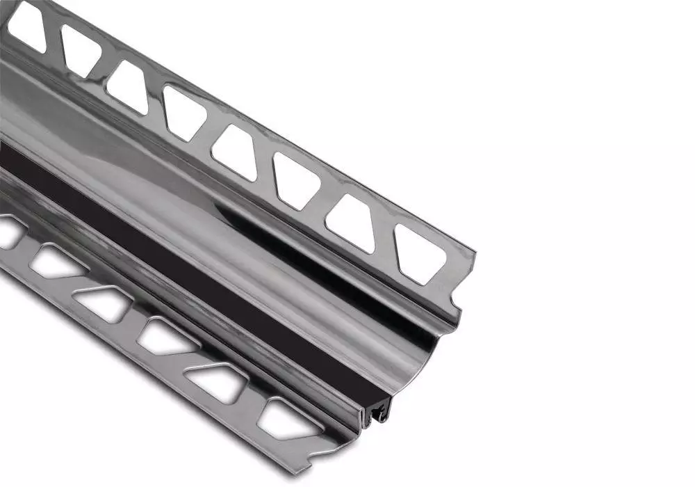 Schlüter-DILEX-HKS to elastyczny profil dylatacyjny z wklęsłym profilem ze stali nierdzewnej, stosowany do łączenia podłogowych płytek ceramicznych z płytkami ściennymi.