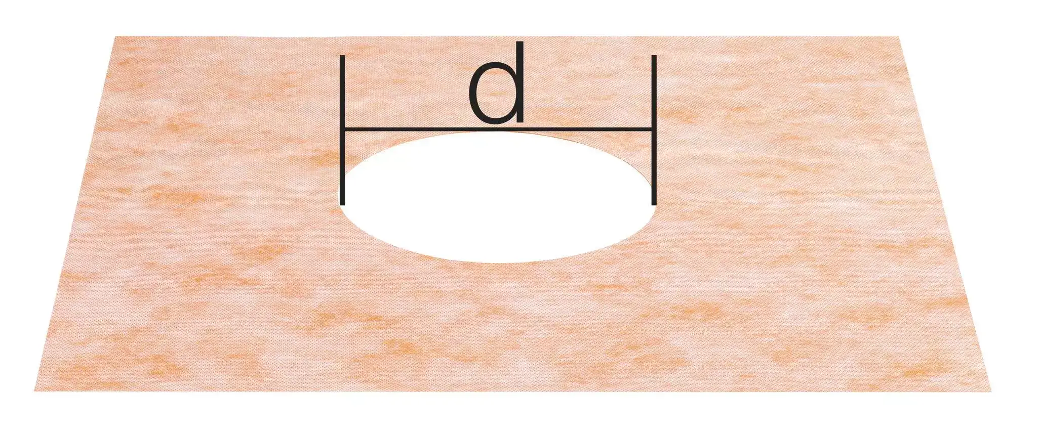 Otwór w manszecie uszczelniającej KERDI z polietylenu ma średnicę 17,5 cm i znajduje się – dla jeszcze większej elastyczności – centralnie w przypadku manszet kwadratowych oraz niecentralnie w przypadku manszety prostokątnej Wymiary manszet odpowiadają standardowym wymiarom powierzchni prysznicowych