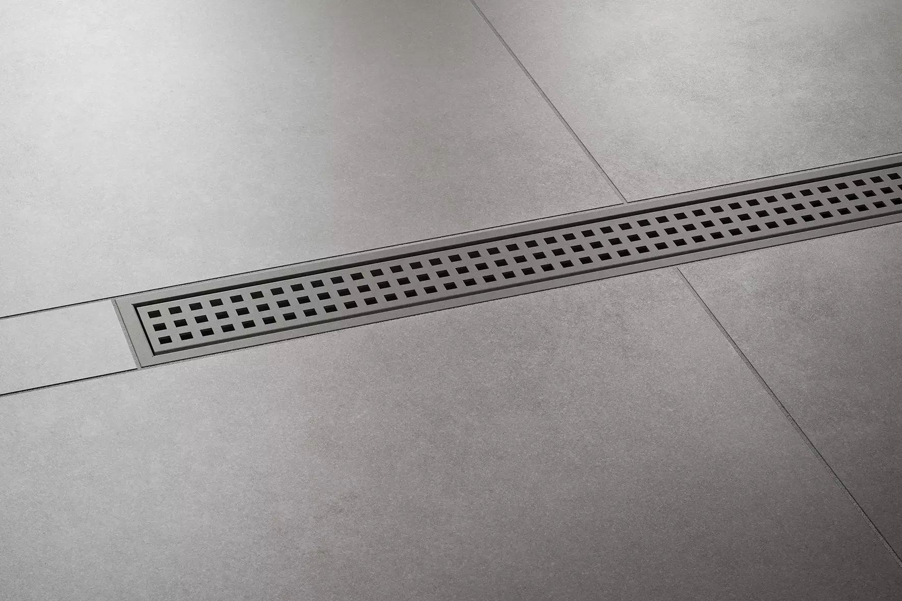 Produkt Schlüter STRKLB19MBW50 to kombinacja kratki i ramki ze wzorem SQUARE KERDI-LINE-B w kolorze bieli brylantowej matowej. Zestaw ten jest kompatybilny z korpusami odpływu KERDI-LINE, a wysokość ramek profilowych można regulować bezstopniowo dla grubości materiału okładziny od 3 do 25 mm.