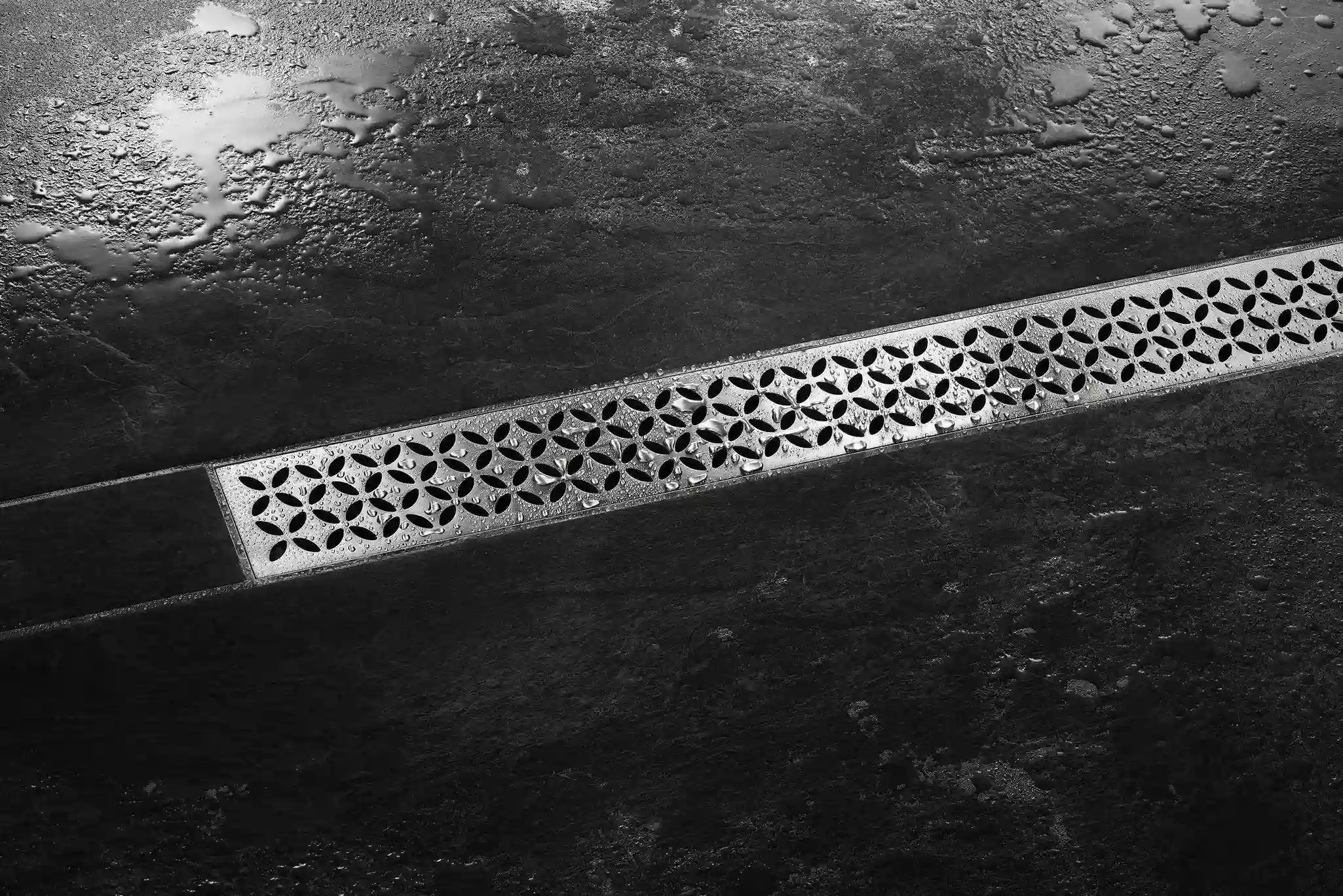 Warianty wzorów pokryw FLORAL, CURVE i PURE wraz z ramkami konturowymi tworzą elegancką serię Schlüter-KERDI-LINE-STYLE, idealną do pryszniców bezbrodzikowych. Ramki konturowe można dostosować do grubości okładziny od 6 do 18 mm, a zestaw kratki i ramki ze szczotkowanej stali nierdzewnej pasuje do odpływu KERDI-LINE o różnych długościach.