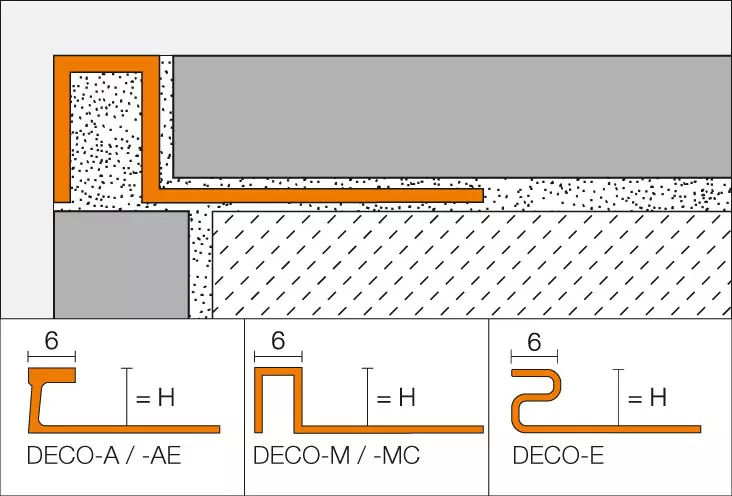 Tworzenie estetycznych spoin za pomocą profili maskujących Schlüter-DECO o wąskiej powierzchni licowej, idealnych do dekoracyjnego wykończenia spoin w okładzinach z płytek. Profil ten doskonale sprawdza się w miejscach, gdzie oprócz wytrzymałości i funkcjonalności liczy się również wysoki poziom estetyki, takich jak pomieszczenia wystawowe, galerie, budynki reprezentacyjne czy powierzchnie targowe.