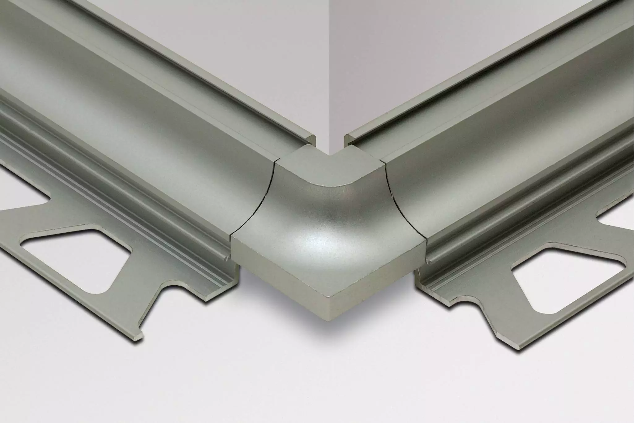 Schlüter-DILEX-AHK/E to narożniki zewnętrzne do profilu wklęsłego DILEX-AHK, natomiast DILEX-AHK/I to narożniki wewnętrzne. Dostępne są również narożniki zewnętrzne i wewnętrzne o kącie 135° oraz zaślepki i łączniki.