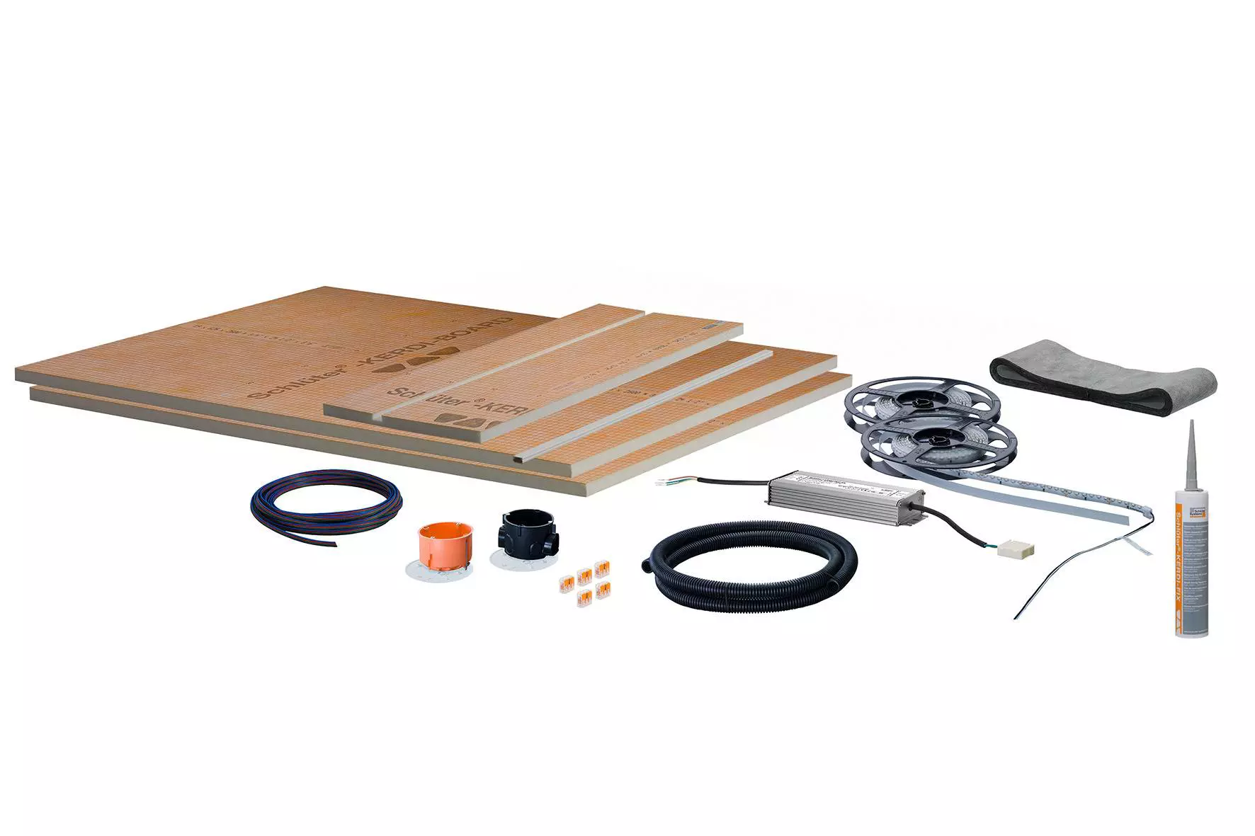 Praktyczny zestaw Schlüter-LIPROTEC-WSK umożliwia tworzenie wielkoformatowych aranżacji z niemal nieograniczoną swobodą kolorystyczną. Zawiera on 2 profile, 2 taśmy LED, zestaw akcesoriów oraz instrukcję instalacji.