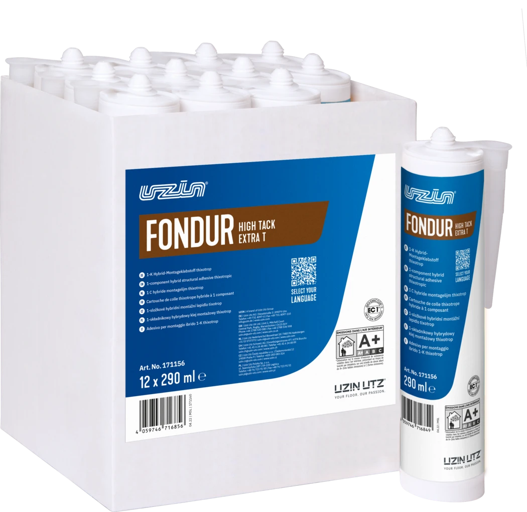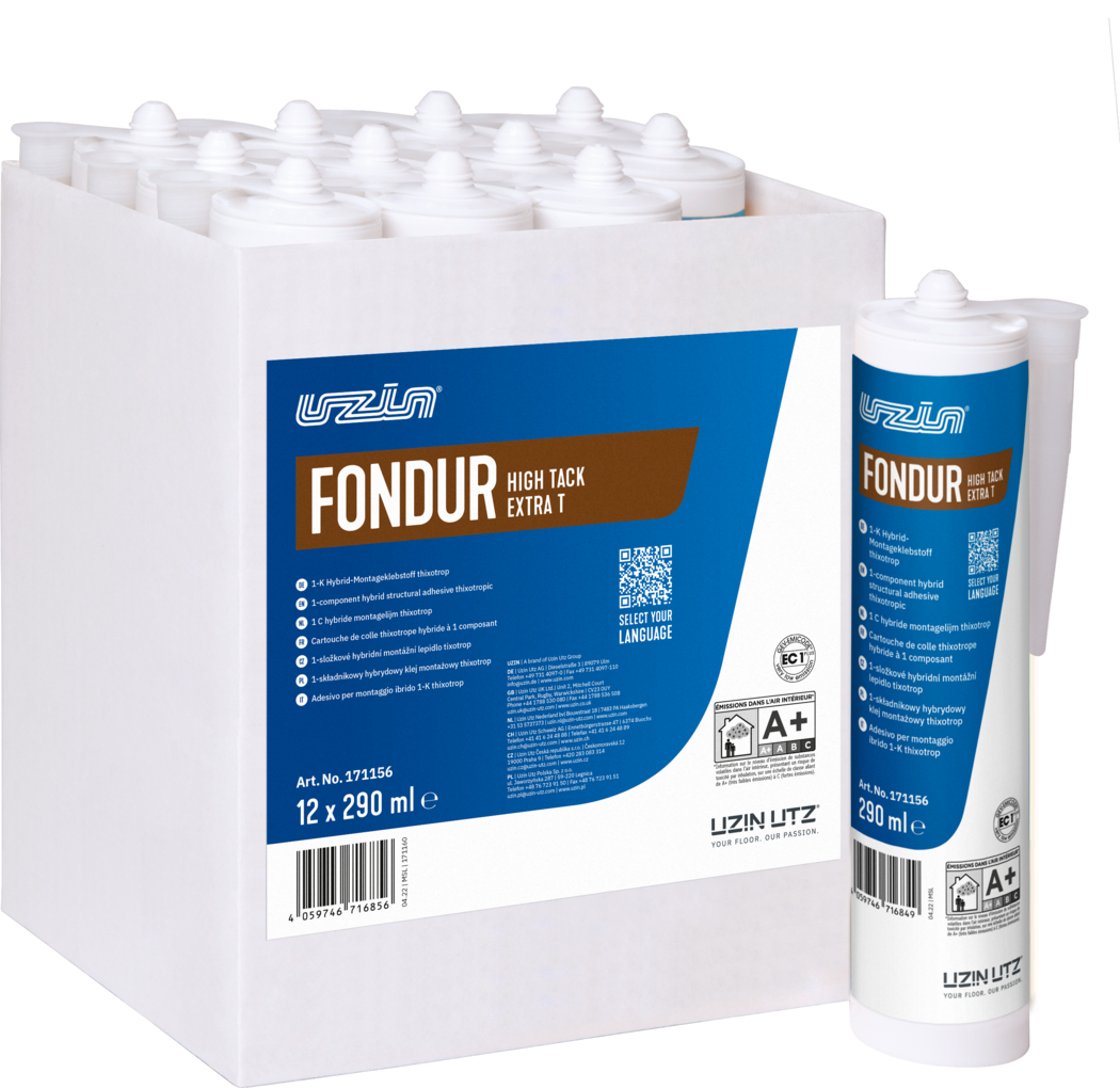 Stabilny, hybrydowy klej montażowy UZIN Fondur HighTac Extra T o bardzo dużej poczatkowej sile klejenia oraz dobrej odporności na działanie promieni UV. Charakteryzuje się niewielkim skurczem podczas schnięcia i łączy różne materiały w sposób mocny, elastyczny i trwały. bardzo duża przyczepność początkowa bardzo szybki proces kształtowania się wytrzymałości elastyczny można go pokrywać farbami/lakierem Zastosowanie Główny obszar stosowania: przyklejanie listew przypodłogowych mocowanie profili Rozszerzony zakres stosowania: przyklejanie szyn mocowanie listew mocowanie płyt izolacyjnych i płyt dekoracyjnych mocowanie paneli ściennych