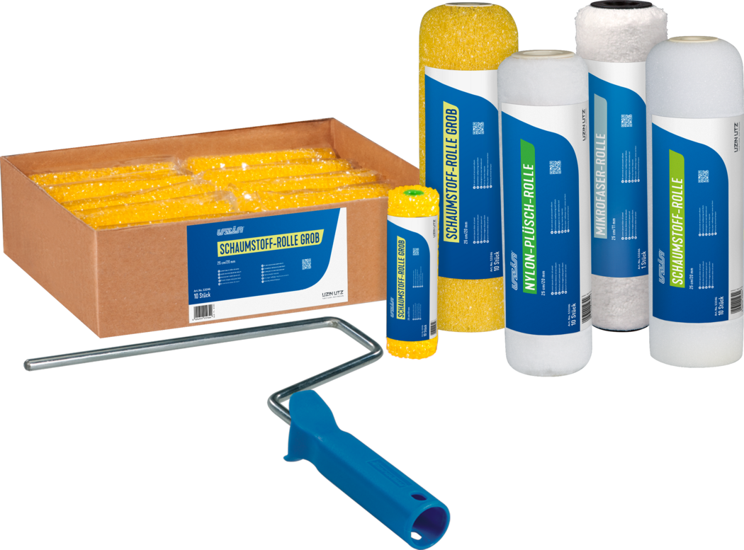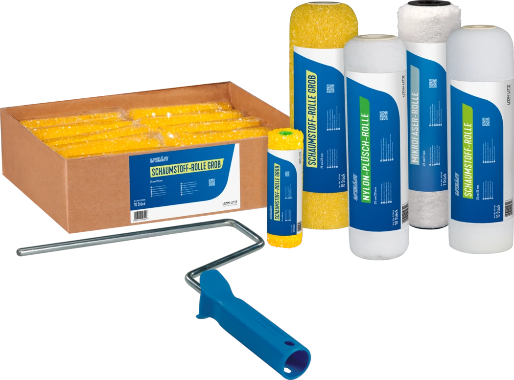 Wałki Uzin przeznaczone do aplikacji środków gruntujących. Uchwyt i wałki do rozprowadzania różnych rodzajów środków gruntujących. dostosowane do produktów firmy UZIN stabilne wygodne w pracy solidność wykonania gwarantuje bardzo długi okres eksploatacji wałki dłużej zachowują trwałość dzięki przechowaniu w specjalnym etui ((Nr art13814)) Zastosowanie Główny obszar stosowania: UZIN wałek nylonowo-pluszowy do środków gruntujących na bazie żywicy epoksydowej, np. UZIN PE 460, UZIN PE 414 BiTurbo lub UZIN PE 280 UZIN Wałek z gąbki do dyspersyjnych środków gruntujących UZIN PE 360 PLUS, UZIN PE 260 lub UZIN U 3000 (środek gruntujący) UZIN Wałek nylonowy do UZIN U 3000 (kleju) UZIN Wałek z gąbki do kleju kontaktowego UZIN WK 222 UZIN Uchwyt do wałka, metalowy z rączką z tworzywa sztucznego, pasujący do wymienionych wyżej wałków.