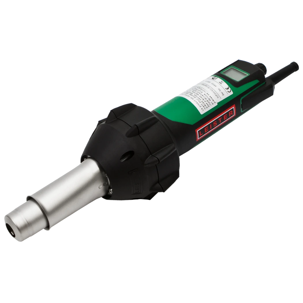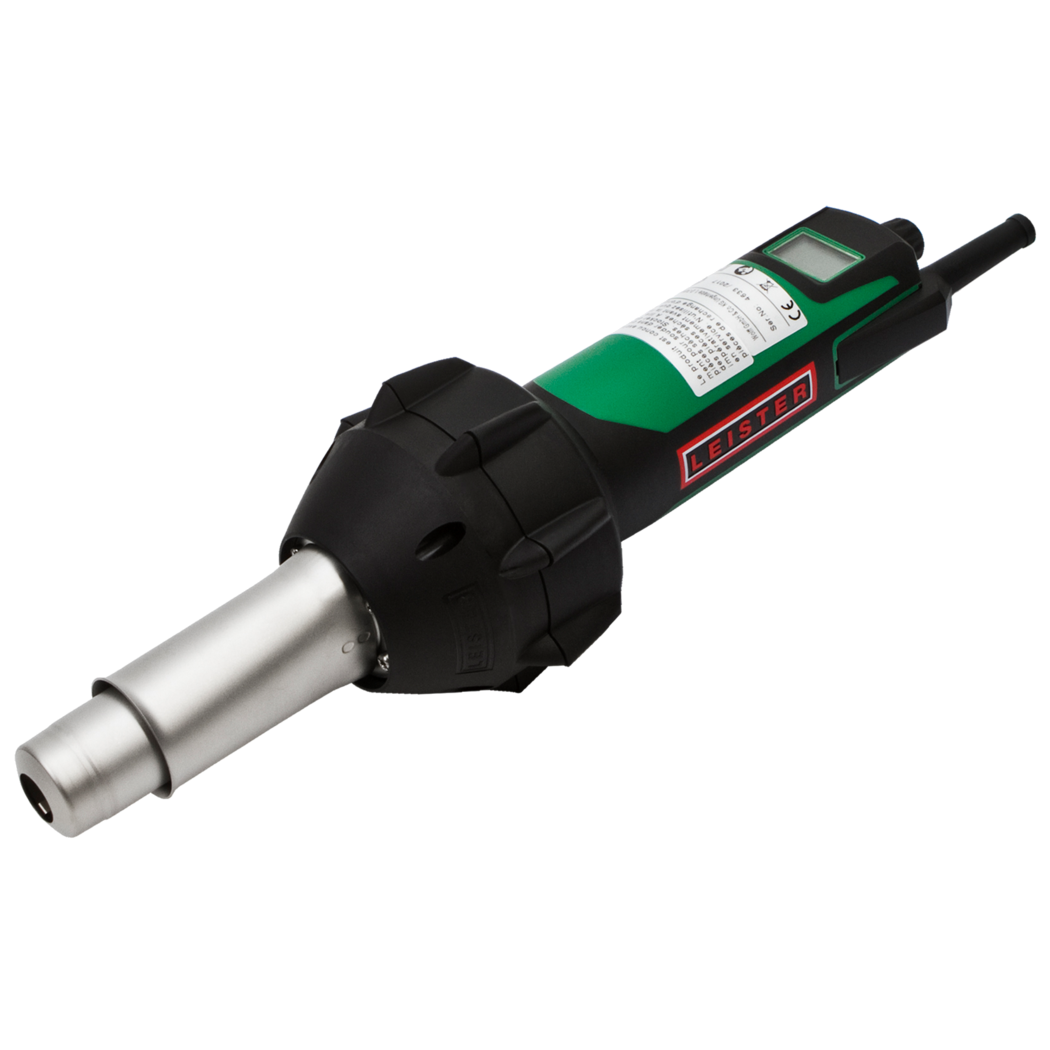 Robustes Heißluft-Gerät zum Schweißen und Schrumpfen von Kunststoff Właściwości Automatyczna stabilizacja ustawionej temperatury, kompensacja wahań napięcia Sonda termiczna przed elementem grzejnym gwarantuje precyzyjne utrzymanie temperatury Ilość powietrza można zmieniać niezależnie od temperatury Moc całkowita 1600 W, element grzejny 1550 W Wyświetlacz cyfrowy Dodatkowe informacje Leister Triac AT