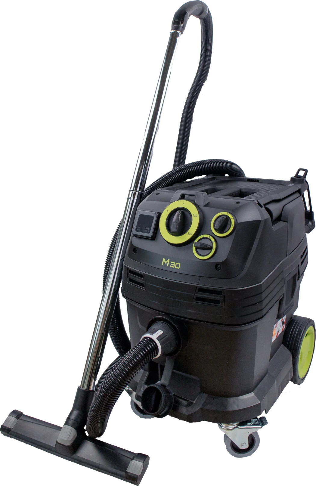 Kompaktowy i bardzo mocny odkurzacz do pracy na mokro oraz na sucho do usuwania niebezpiecznych i drobnych pyłów (klasa pyłów M). Lekki, kompaktowy odkurzacz o szerokim spektrum zastosowania. Właściwości Klasa pyłowa: M Wydajne w pełni automatyczne oczyszczanie filtra Ręczna regulacja mocy ssania Antyelektrostatyczny wąż ssący Zalecenie: Pełna efektywność przy zastosowaniu filtra dowęża #163023 (dostępny opcjonalnie) Dodatkowe informacje odkurzacz M30 wąż ssący (4 m) rura ssąca filtr fałdowany płaski worek na kurz z włókniny dysza podłogowa do pracy na mokro/sucho 360 mm dysza do szczelin złączki do podłączania elektronarzędzi (4 szt.)