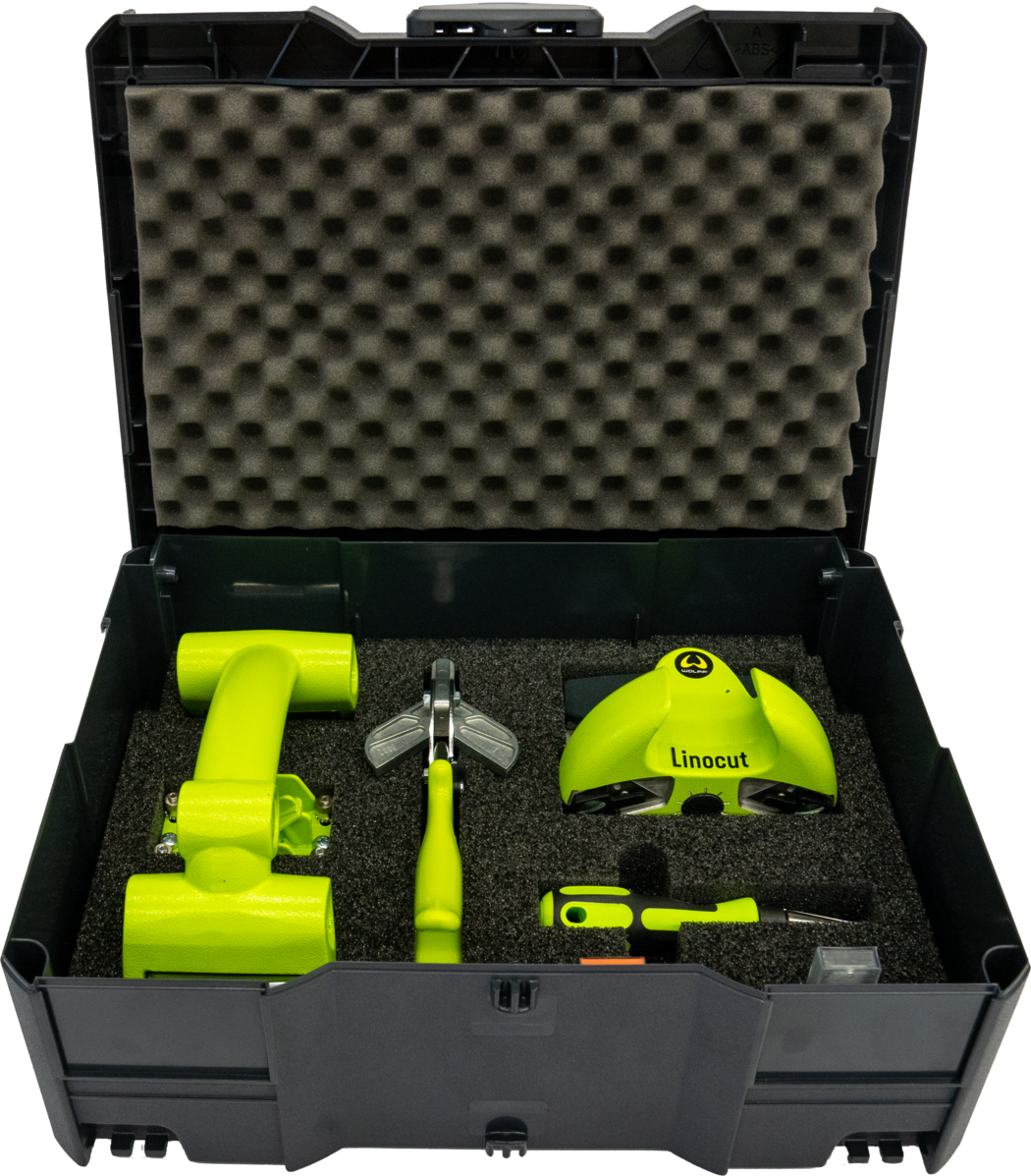 Kompletny zestaw do układania paneli i płytek winylowych (LVT) w praktycznej walizce marki Tanos do łatwego i bezpiecznego transportu. Doskonałe łączenia wszystkich wykładzin elastycznych i z włókniny igłowanej za pomocą urządzenia Linocut oraz dociskanie łączeń wykładzin elastycznych. Dodatkowo, urządzenie do cięcia styków Linocut, przycinarka FasTrimmer do fazowania spodu wykładzin, rolka dociskowa Duo, nożyce poprzeczne do podłóg winylowych, Pica-Dry do znakowania otworów oraz walizka Tanos.