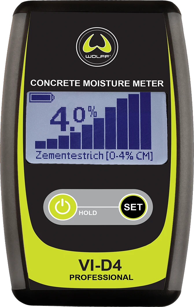 Przeznaczony do pomiarów wilgotności podłoży Właściwości Bezkontaktowa metoda pomiaru wilgotności przy jednoczesnym zachowaniu wysokiej dokładności wyniku pomiaru Łatwa obsługa urządzenia Wyświetlanie wyników pomiarów w czasie rzeczywistym na czytelnym wyświetlaczu Nadaje się do wstępnego sprawdzenia gotowości powierzchni do układania pokryć przy pomiarach CM Intuicyjna obsługa Możliwość podłączenia różnych czujników pomiarowych Obudowa Softtouch Zasilanie: Bateria, 2 x AA 1,5 V Zakres temperatur pracy: od 5 stC do 40 stC Dostępne skale dla podłoży: beton, cement, anhydryt, skala względna, sensor temperatury powierzchni IR, 15,3 skali/cyfry Ograniczenia: Urządzenie pomiarowe V1-D4 nie jest w stanie zmierzyć wilgotności przez materiały przewodzące prąd, takie jak osłony blaszane, przez wykładziny z kauczuku etylenowo-propylenowego lub mokrych powierzchni. Ponadto nie nadaje się do pomiaru przykrytych podłóg betonowych, np. drewnem. Dodatkowe informacje Miernik V1-D4 komplet baterii walizeczka transportowa