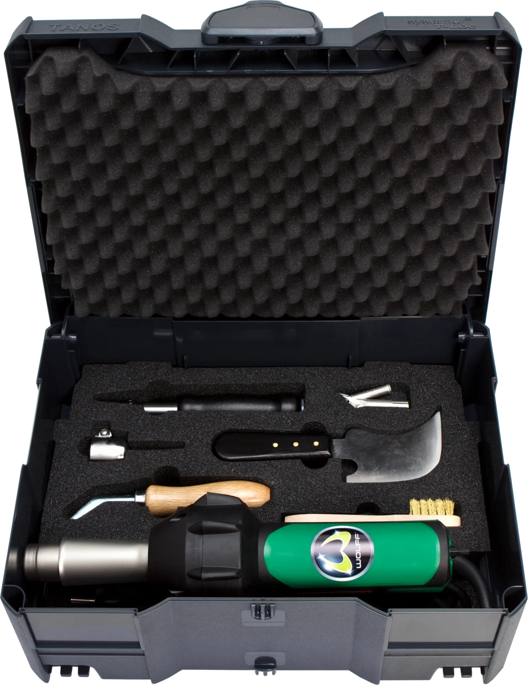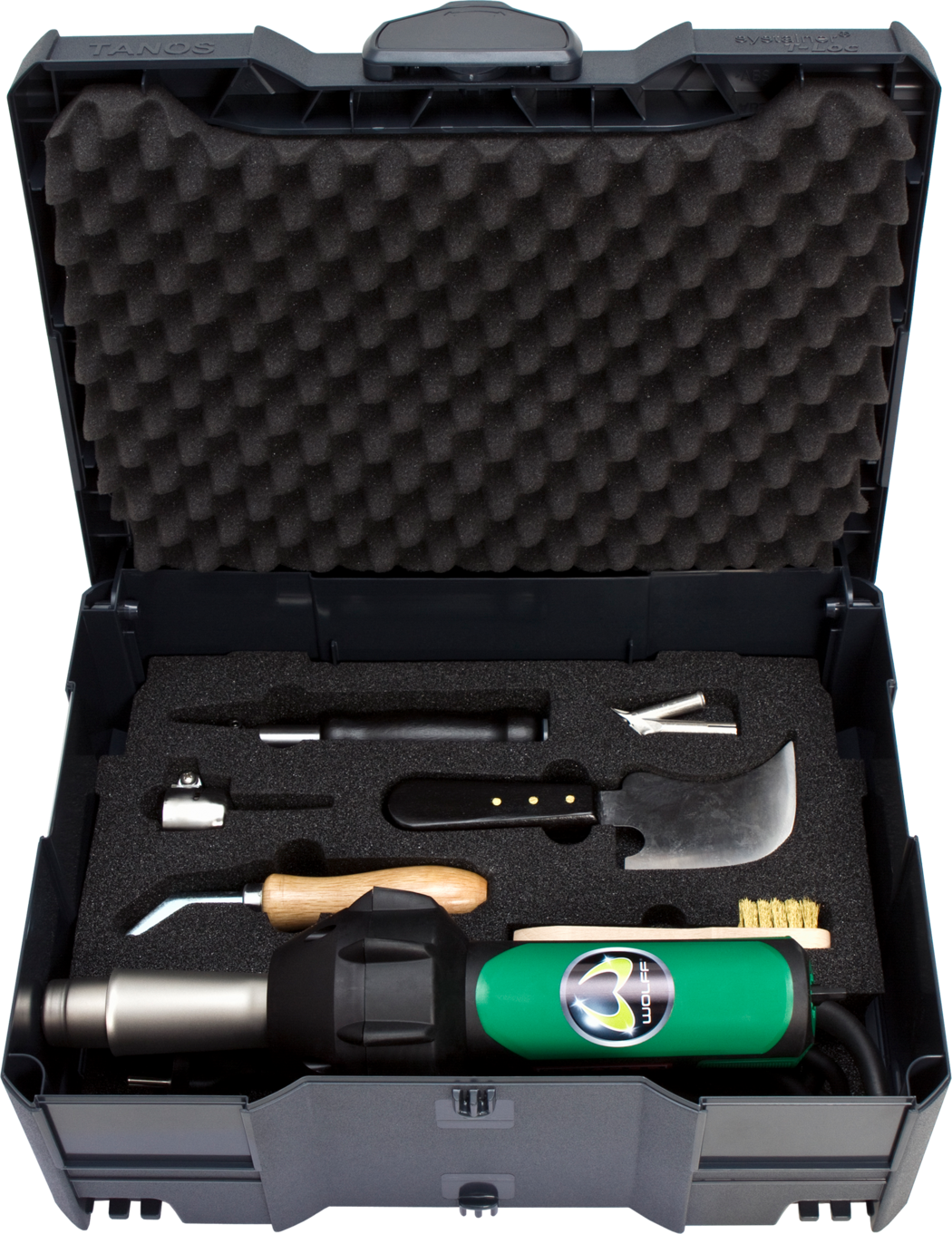 Spawarka ręczna Triac ST z elektroniczną regulacją i chłodzoną rurą ochronną. Kompletny osprzęt w walizce. Właściwości Z diamentowym kamieniem szlifierskim do szlifowania poprawiającego po nożach o kształcie półksiężyca. Kompletny osprzęt w walizce. Następca urządzenia Leister Triac S Dodatkowe informacje Traic ST Dysza prosta Dysza szybkiego spawania 5 mm do poliolefinu Frez ręczny Kamień szlifierski diamentowy Nóż o kształcie półksiężyca Sanki spoiny, Wałek dociskowy 15 mm Szczotka czyszcząca Skrzynka transportowa
