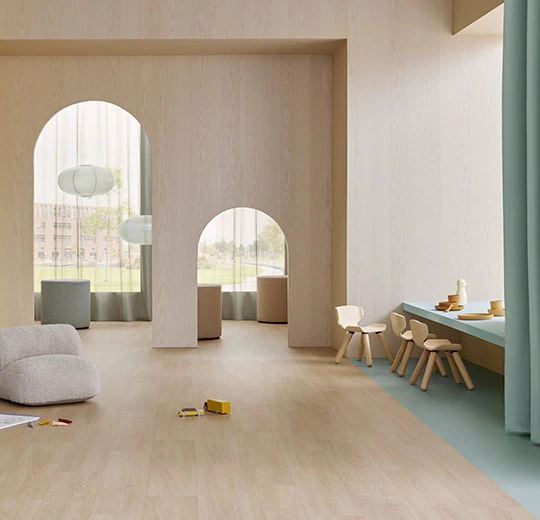 To świetny wybór charakteryzujący się wysoką odpornością na zużycie, wilgoć i zabrudzenia, idealny do intensywnie użytkowanych pomieszczeń. Wykładziny PVC to inwestycja w funkcjonalność i estetykę, ich różnorodność wzorów i kolorów, trwałość oraz antypoślizgowe właściwości sprawiają, że doskonale sprawdzają się zarówno w domach, jak i przestrzeniach komercyjnych. Produkty firmy Forbo™ idealnie dopasują się do każdego projektu.